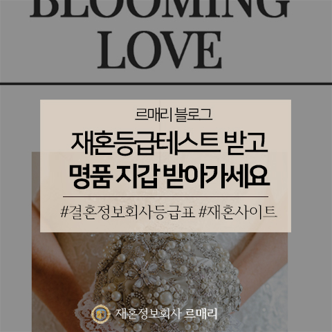재혼 등급 테스트를 받으신 분들에게는 무료로 재혼상담까지 받을 수 있는 기회를 제공해 드리고 있는데요. 재혼을 진지하게 고민하는 분들이라면, 이번 기회에 내 등급도 확인하고, 결혼 상담은 물론, 푸짐한 선물까지 받아 보시면 어떨까요?