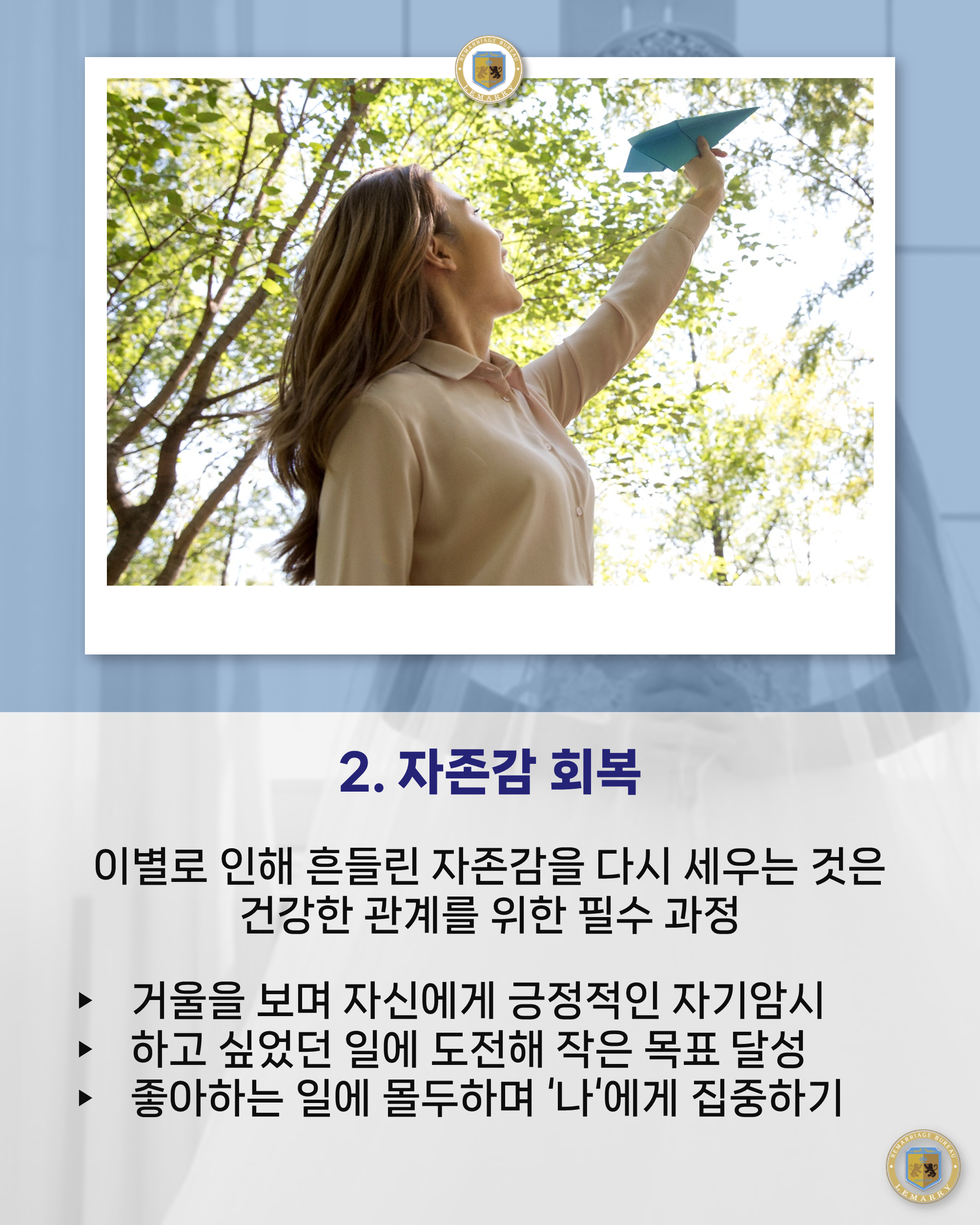 오늘 르매리에서는 '재혼을 위한 첫 걸음, 이별 후유증 극복 가이드'에 대해 알아보았습니다.