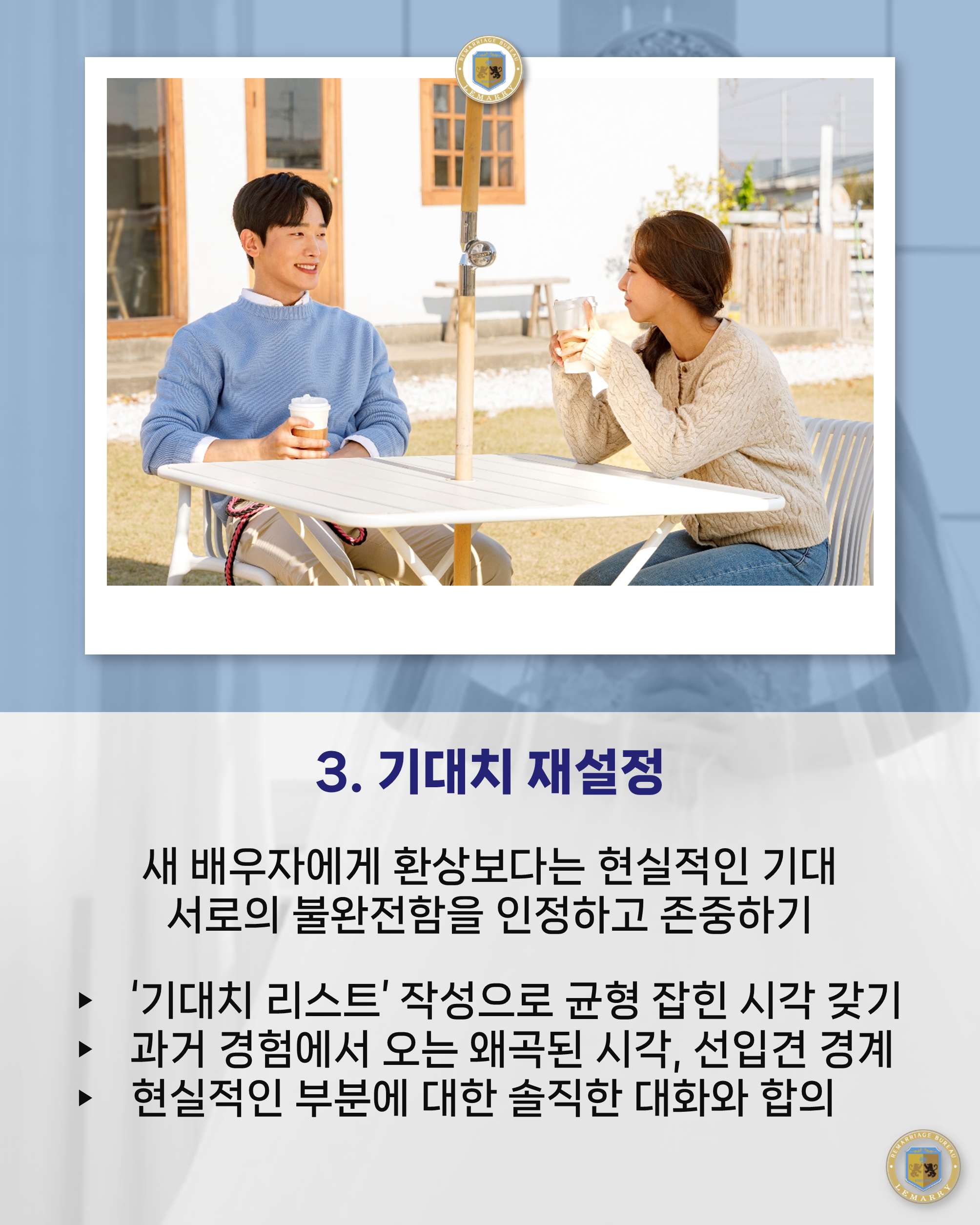 안녕하세요. 재혼전문 결혼정보회사 르매리입니다.