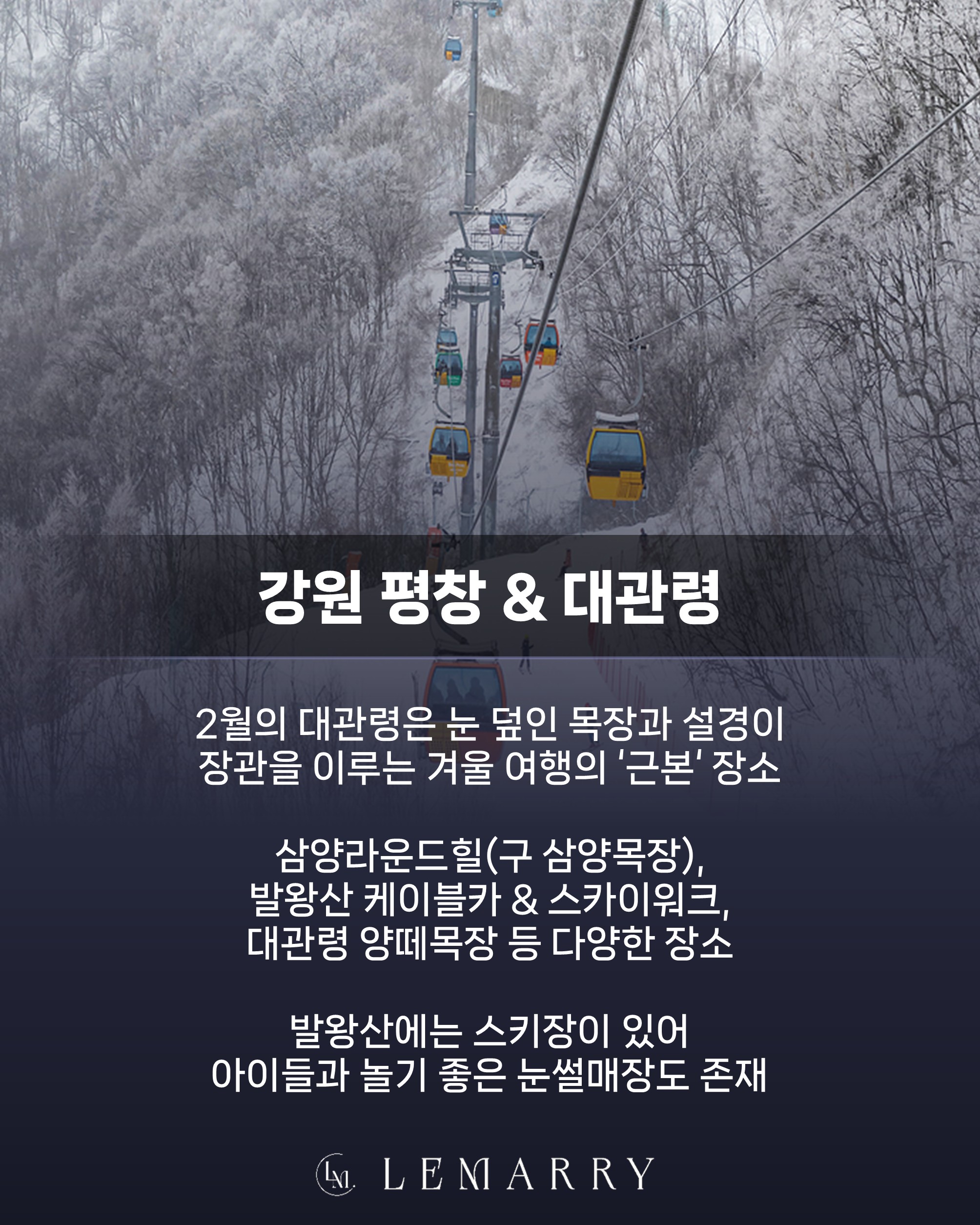 2월의 대관령은 눈 덮인 목장과 설경이 장관을 이루는 겨울 여행의 '근본 장소'라고 할 수 있습니다.