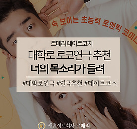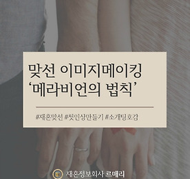 돌싱라이프/데이트 코치 썸네일형 리스트형 대학로 연극 추천! 너의 목소리가 들려! 썸과 관계를 전진시키고 싶을 때! 코믹 한 스푼에 로맨틱까지 얹은 연극이 딱이죠?웃음 폭발, 달달구리 설렘까지 빵빵 터지는 핑크빛 초능력 로맨틱 코미디가 대학로에 상륙!입소문만으로 대학로를 평정해 제목을 듣자마자 “아 그거?”라는 반응이 절로 나오는 연극‘너의 목소리가 들려’ 추천 드립니다!과연 어떤 연극이길래, 재혼정보회사 르매리가 자신있게 추천하는지 한 번 살펴볼까요? 너의 목소리가 들려는 평화롭던 동네에 큰 화재가 발생한 10년 뒤 이야기를 그립니다화재가 발생한 건물에 새로 들어온 편의점에서 일하는 주인공 민준!그에게는 놀라운 비밀이 하나 숨겨져 있었는데요.바로 우연한 사고 이후 다른 사람의 생각을 들을 수 있는 엄청난 초능력의 소유자라는 사실! 그런 민준의 앞에 등장한 새로운 아르바.. 더보기 돌싱 만남&직장인 회식 메카 종각역 이자카야 추천 4선! 안녕하세요, 돌싱 여러분들의 행복을 책임지는 르매리입니다! 바쁜 연말 시즌도 지나가고, 이제 본격적인 새 시작을 앞두고 있죠? 이번 2020년은 설날도 예년에 비해 빠르게 찾아오는 덕분에 신년회 날짜를 급하게 조율하는 경우가 많은 것 같아요. 재혼을 꿈꾸는 돌싱들의 맞선 역시 활발해지는 시기가 1월인데요. 회식이나 만남 자리에서 분위기 잡으며 술 한 잔 기울이기에는 이자카야만큼 좋은 곳이 또 없죠? 그래서 재혼전문 결혼정보회사 르매리가 돌싱만남 및 직장인 회식을 위한 이자카야를 엄선해 봤습니다! 지금부터 같이 알아볼까요? 이자카야 나무 첫 번째 플레이스는, 선릉과 논현 등 이미 직장인 회식 메카로 손꼽히는 곳에서 맛과 분위기를 검증한 '이자카야 나무'입니다!이자카야 나무 종각점은 종각역 4번 출구로 나.. 더보기 크리스마스 시즌에 뭐 할까? 크리스마스 데이트 GUIDE 크리스마스 시즌에 뭐 할까? 크리스마스 데이트 GUIDE 로맨틱한 연인들의 날, 크리스마스가 다가오고 있습니다.벌써 머라이어 캐리 언니는 캐롤송으로 음원차트 순위를 올리고 계시고,거리에는 화사한 조명이 켜지면서 아름다운 장관을 연출하는데요.남녀노소 모두를 설레게 하는 크리스마스 분위기를 물씬 느끼고 싶은 분들!,특별한 추억을 남길 수만 있다면 밖에서 찬 바람을 맞아도 좋다! 하시는 분들,썸남썸녀와 사이를 단번에 좁히고 싶어하시는 분들!재혼전문 결혼정보회사 르매리가 이 모든 분들을 만족시킬 수 있을 만한 가이드를 드릴게요! 청계천에 활짝 핀 루미너스 트리 벌써 5년차! 이제 크리스마스 축제계의 베테랑으로 자리잡은 청계천을 소개해드립니다!오는 12월 13일 금요일! 청계광장에서 개막 점등식이 열린 후,.. 더보기 떨리는 맞선, 호감도 상승에는 ‘메라비언의 법칙’ 기억하세요! 재혼성공을 위한 맞선, 첫인상에 상대방 사로잡기 안녕하세요! 재혼정보회사 르매리입니다. 맞선과 소개팅, 듣기만 해도 너무 설레는 단어죠? 하지만 “과연 호감을 잘 어필할 수 있을까?”라는 걱정이 드는 것도 사실이에요. 그래서 재혼전문 결혼정보회사 르매리가 유명한 커뮤니케이션 이론을 준비했는데요! 바로 아는 사람들은 한 번쯤 들어봤을 법한 ‘메라비언의 법칙’ 입니다! 메라비언의 법칙이란? ‘메라비언의 법칙’은 커뮤니케이션에서 호감으로 작용하는 요소가 시각과 청각이 90%이며 말의 내용은 고작 7%에 불과하다는 이론이랍니다! 더 구체적으로 설명하자면 목소리가 38%, 외적인 이미지가 55%의 영향을 미친다고 하네요. 미국 저명한 대학교의 명예교수이자 심리학자인 ‘앨버트 메라비언’ 님이 발표한 이론으로 그 이.. 더보기 재혼성공을 위한 30,40대 남자 맞선의상·소개팅 패션 재혼성공을 위한 30,40대 남자 맞선의상·소개팅 패션 안녕하세요, 재혼정보회사 르매리입니다.소개팅 자리에서 가장 중요한 것은 바로 첫인상인데요. 잘생긴 외모나 중저음 목소리가 아니어도 자신에게 어울리는 스타일링으로 소개팅에서 큰 점수를 딸 수 있습니다.때문에 성공적인 소개팅이나 맞선을 위해 패션 센스를 익혀두시는 게 좋겠죠? 오늘은 재혼전문 결혼정보회사 르매리와 함께 남자 소개팅 패션, 맞선의상을 알아보도록 해요. 단체미팅이나 커피미팅에서 좋은 인연을 만나고자 하는 30대 ,40대 ,50대 돌싱분들에게 큰 도움이 되실 테니 오늘의 포스팅을 꼭 참고해주세요. 심플하고 깔끔한 상의 여성분들이 좋아하는 소개팅 패션은 깔끔하면서도 댄디한 느낌을 주는 스타일입니다. 부담을 느낄 수 있는 풀정장 스타일보다는 세미.. 더보기 강남역 카페추천, 사진찍기 좋은 카페 클로리스 안녕하세요~~ 재혼사이트 르매리입니다! 요즘 카페나 먹방투어에 조금 시들했었는데요. 근처 맞선보기 좋은 카페가 있다는 소식을 듣고 냉큼 다녀왔습니다. 카페 추천을 받아서 다녀온 곳은 분위기 좋고, 공간 또한 크고 넓은 강남역 카페 클로리스입니다. 강남역과 신논현역 사이에 위치하고 있으며, 영업시간은 아침 9시부터 밤 12시까지라고 해요. *계단조심* 지하 2층부터 4층까지 이어져있는 클로리스. 지하층은 클로리스 교육장 및 대관 전용공간으로