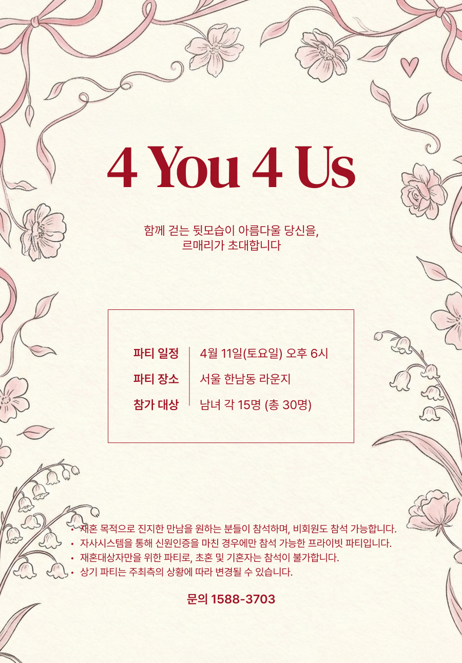 재혼 전문 결정사 르매리 4월 미팅파티 <4 You 4 Us>