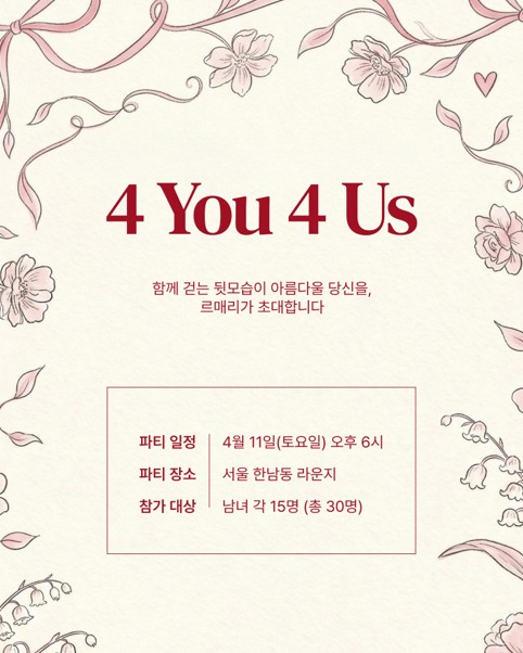 함께 걷는 뒷모습이 아름다울 당신을, 르매리가 초대합니다.